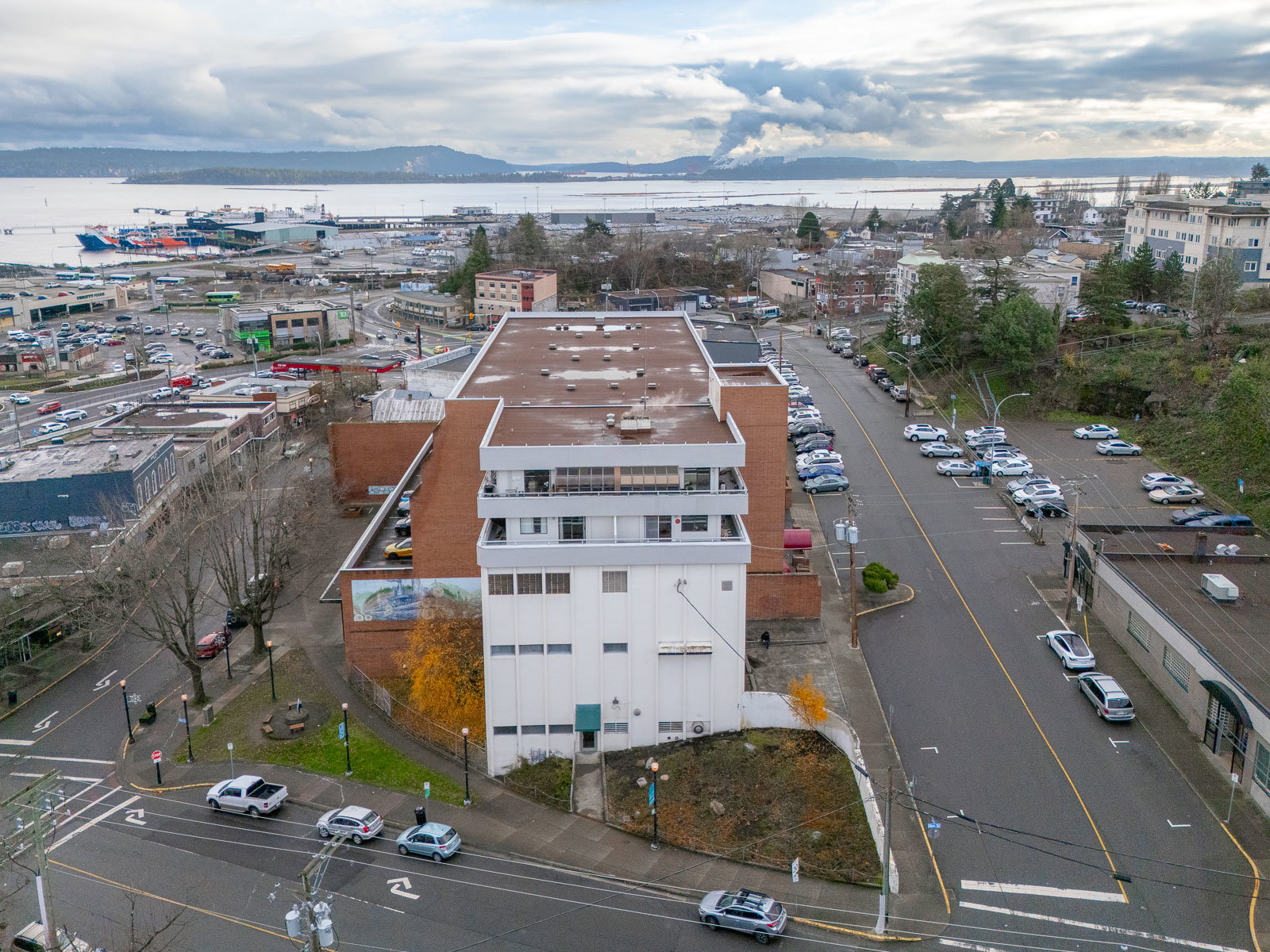Prime Downtown Opportunity in Nanaimo, extensively upgraded property featuring approximately 50,000 sq. ft. of thoughtfully designed and turnkey office space. Perfectly positioned in the heart of downtown Nanaimo on Vancouver Island, this rare opportunity offers exceptional potential for businesses seeking a central and professional location. The property comprises seven distinct units, each tailored for substantial office use, with configurations ranging from 3 to 18 offices per unit. Each unit boasts a variety of functional amenities such as staff rooms, kitchens, reception areas, waiting rooms, washrooms and ample storage solutions. Building is equipped with an on-site workshop, and a cafeteria/restaurant. Spread across two floors with two convenient access points, the property is zoned Downtown 4 (Terminal Avenue), allowing for diverse uses such as offices, financial institutions, commercial or technical schools, convention centers, cultural facilities, and potential for a conversion to multi-family. Adding to its appeal, the location is within walking distance of numerous amenities, including the Hullo Ferry to downtown Vancouver, float plane services, Helijet, the Gabriola Island Ferry, hotels, entertainment venues, the convention center, shopping centres, retail stores, personal service businesses, and a variety of restaurants. This is a rare opportunity in a prime downtown location. For more details, request an information package or schedule a private tour today. Plus GST