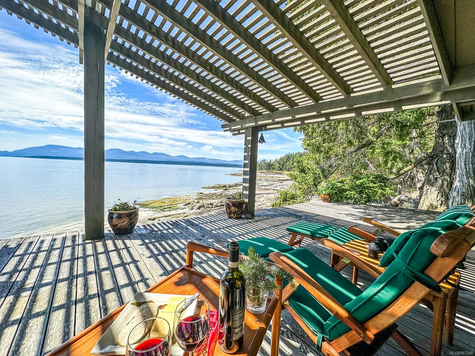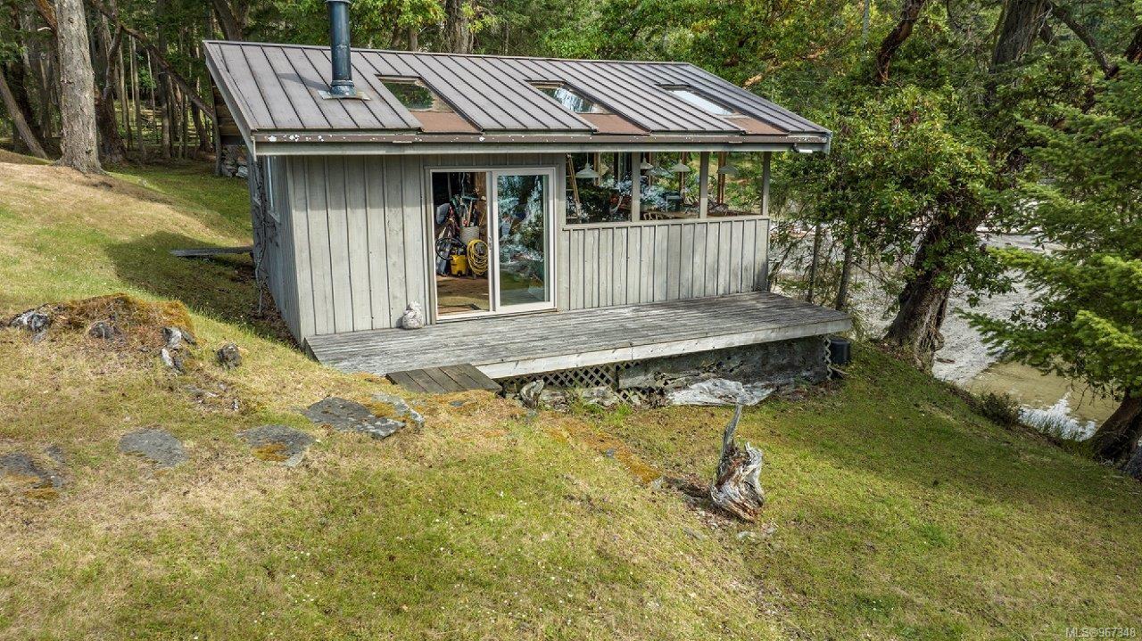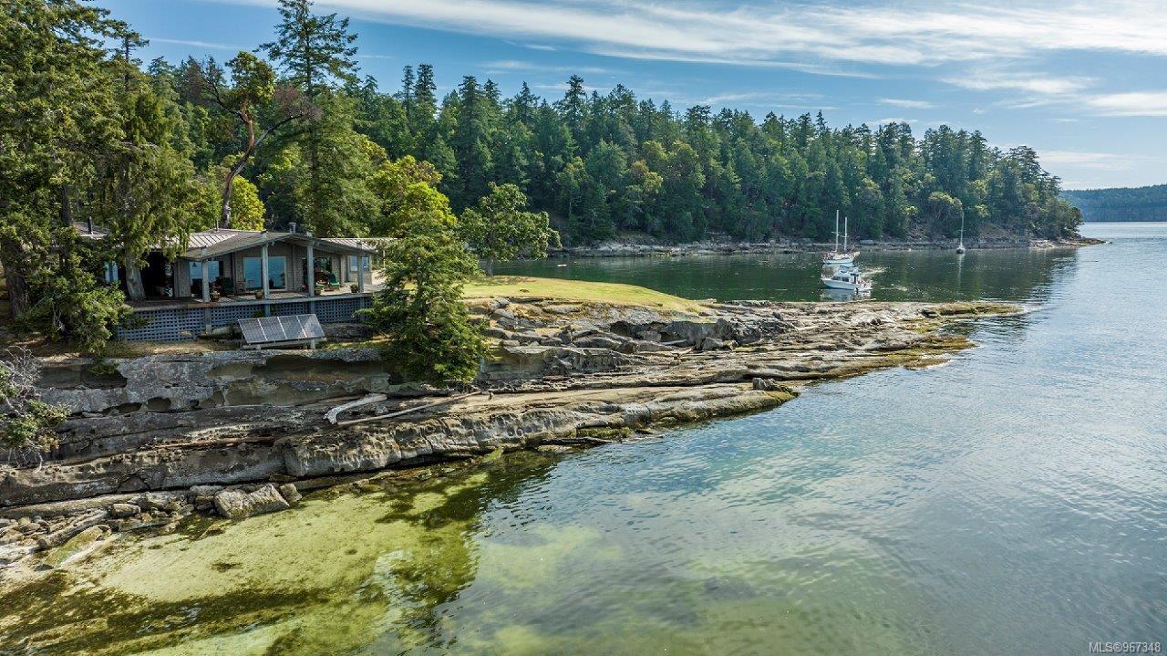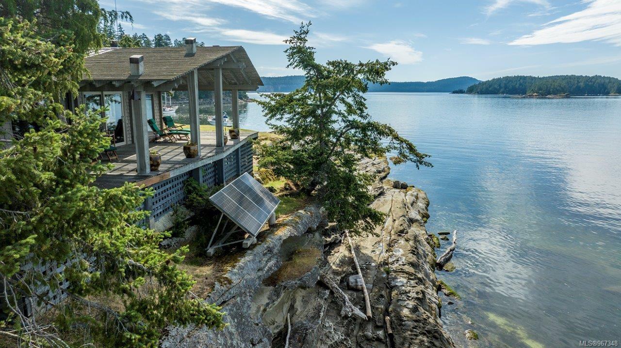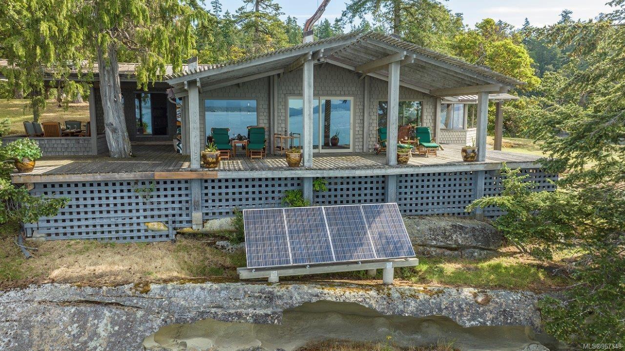 Remarkable piece of Paradise located on DeCourcy Island in the Gulf Islands off Vancouver Island in beautiful BC. This 1.5-acre parcel is like no other on the island & is truly a must-see if you are looking for an amazing one-of-a-kind waterfront retreat. The property is south facing with over 1,000 ft of waterfront & 180-degree views from this spectacular estate. This property has been improved over time to include a spacious & quality built 1,257 sq ft 1 level cottage with 2 bedrooms, 2 bathrooms & a large, picturesque wrap around deck where most of the time will be spent! The cottage offers an open concept design with a dining area, kitchen equipped with propane stove & 3-way fridge, & living room with cozy wood stove, & huge windows with views from every angle. The primary bedroom is amazing & situated overlooking the point & views beyond. Equipped with solar panels & a significant battery powered Outback power system with generator back up which is in the 566 sq ft workshop/storage building which could also be used as additional accommodation. Additionally improved with a 678 sq ft multi-purpose building, that offers a carport, stables, workshop/storage, & utility room with water. There are 2 drilled wells on site with filtration system in the house & gas fired hot water system. The property is located next to Pirates Cove Marine Park, which offers a sandy beach, walking trails, & a private marina called “Russell Landing Marina” open to residents that also has a Float Plane dock. DeCourcy Island offers potable water at the park well, commercial wharf w/crane hoist for offloading materials, community association with their own fire department & a tranquil & serene lifestyle with off grid living & no ferry service. Easily accessible boat access from Boat Harbour, Cedar, Gabriola Island & Vancouver for weekend getaways & summer vacations. The surrounding area has excellent fishing, crabbing, prawning & all the sightseeing & exploring you could want!