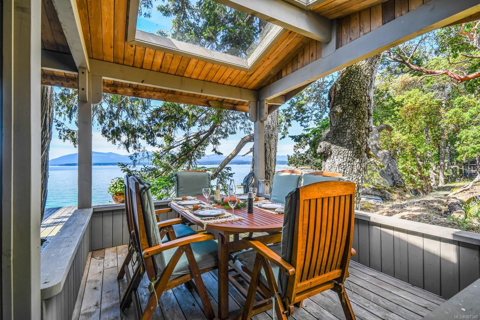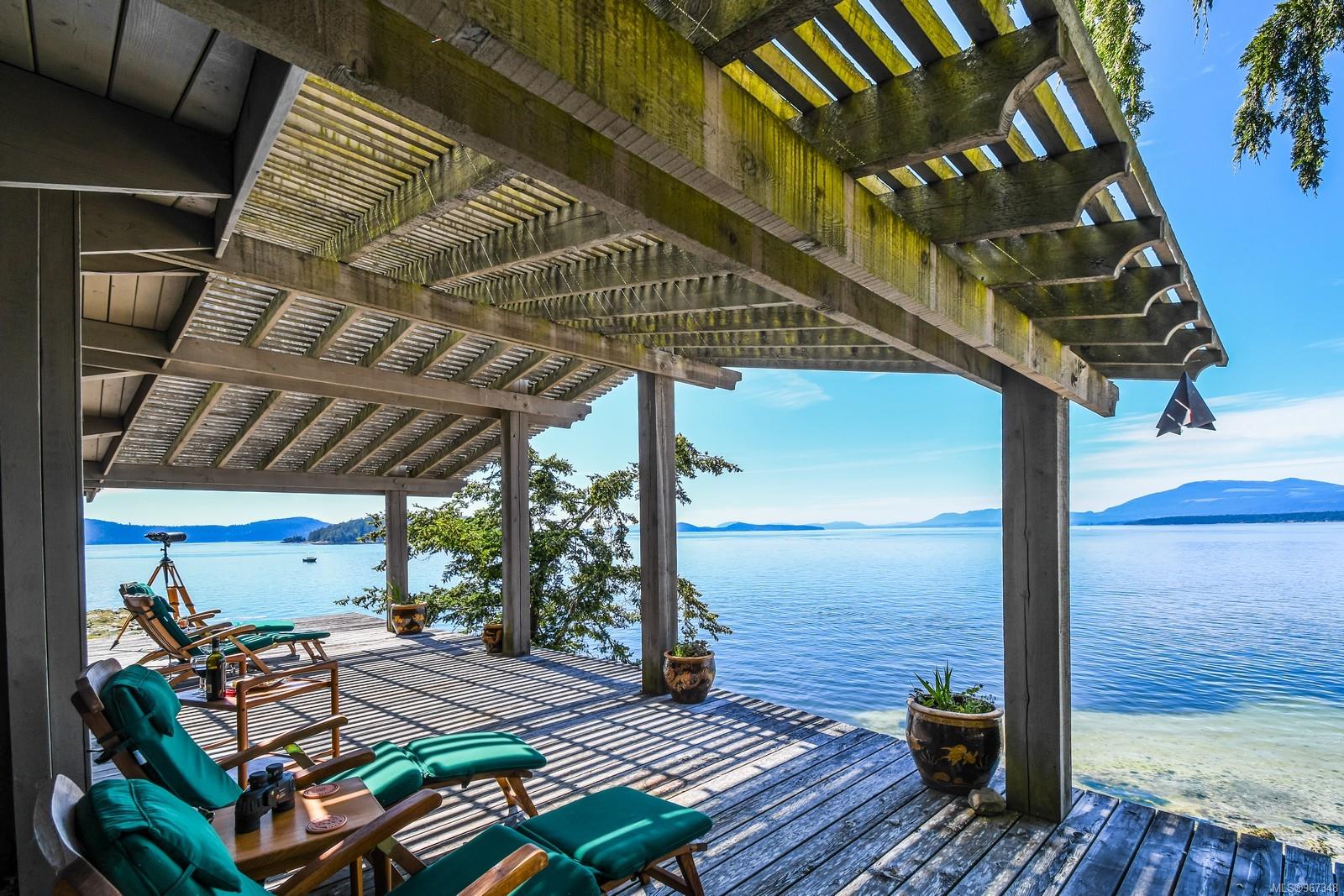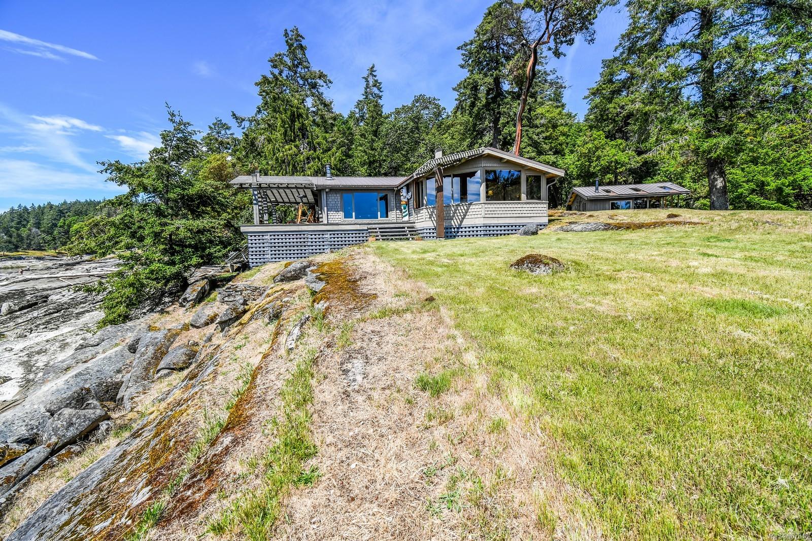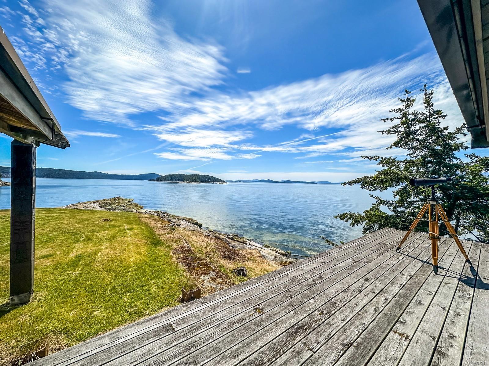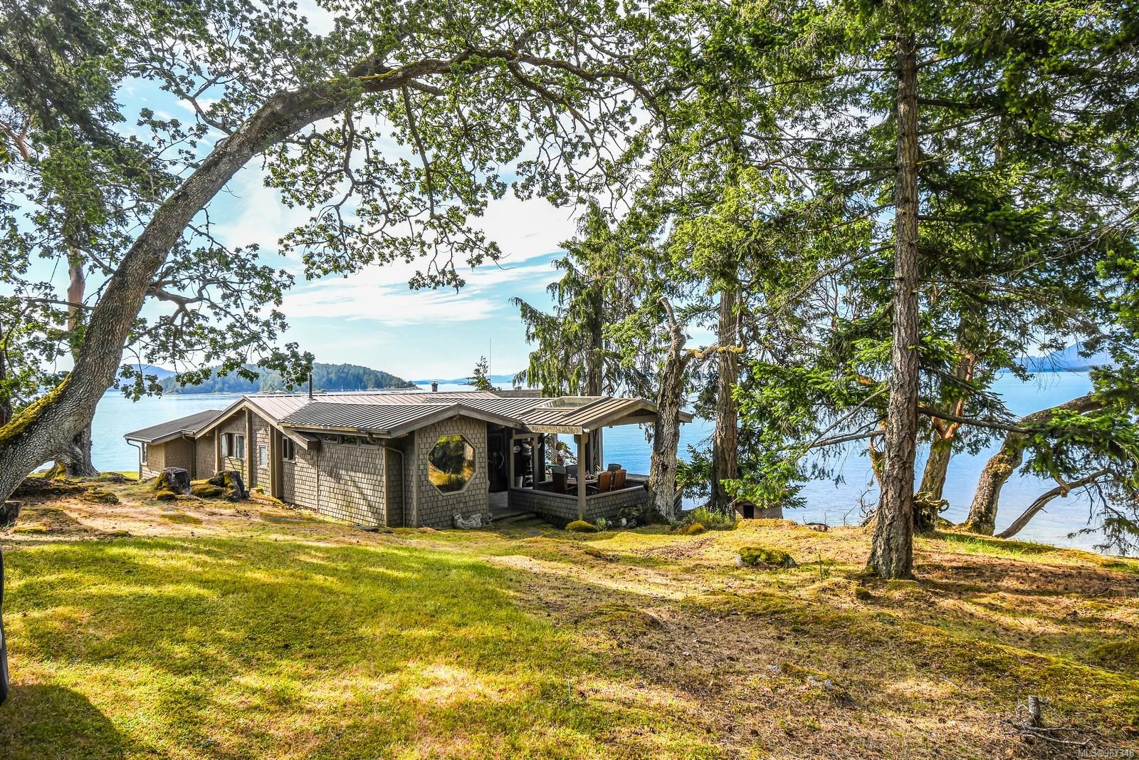 Remarkable piece of Paradise located on DeCourcy Island in the Gulf Islands off Vancouver Island in beautiful BC. This 1.5-acre parcel is like no other on the island & is truly a must-see if you are looking for an amazing one-of-a-kind waterfront retreat. The property is south facing with over 1,000 ft of waterfront & 180-degree views from this spectacular estate. This property has been improved over time to include a spacious & quality built 1,257 sq ft 1 level cottage with 2 bedrooms, 2 bathrooms & a large, picturesque wrap around deck where most of the time will be spent! The cottage offers an open concept design with a dining area, kitchen equipped with propane stove & 3-way fridge, & living room with cozy wood stove, & huge windows with views from every angle. The primary bedroom is amazing & situated overlooking the point & views beyond. Equipped with solar panels & a significant battery powered Outback power system with generator back up which is in the 566 sq ft workshop/storage building which could also be used as additional accommodation. Additionally improved with a 678 sq ft multi-purpose building, that offers a carport, stables, workshop/storage, & utility room with water. There are 2 drilled wells on site with filtration system in the house & gas fired hot water system. The property is located next to Pirates Cove Marine Park, which offers a sandy beach, walking trails, & a private marina called “Russell Landing Marina” open to residents that also has a Float Plane dock. DeCourcy Island offers potable water at the park well, commercial wharf w/crane hoist for offloading materials, community association with their own fire department & a tranquil & serene lifestyle with off grid living & no ferry service. Easily accessible boat access from Boat Harbour, Cedar, Gabriola Island & Vancouver for weekend getaways & summer vacations. The surrounding area has excellent fishing, crabbing, prawning & all the sightseeing & exploring you could want!