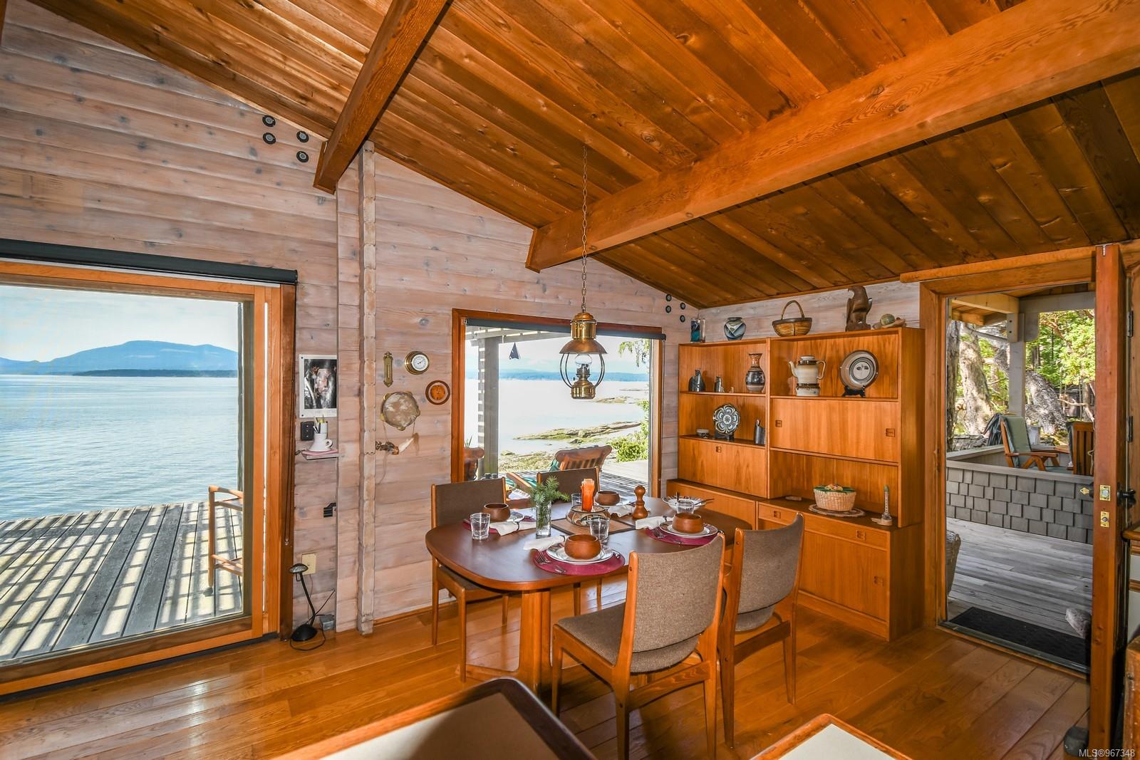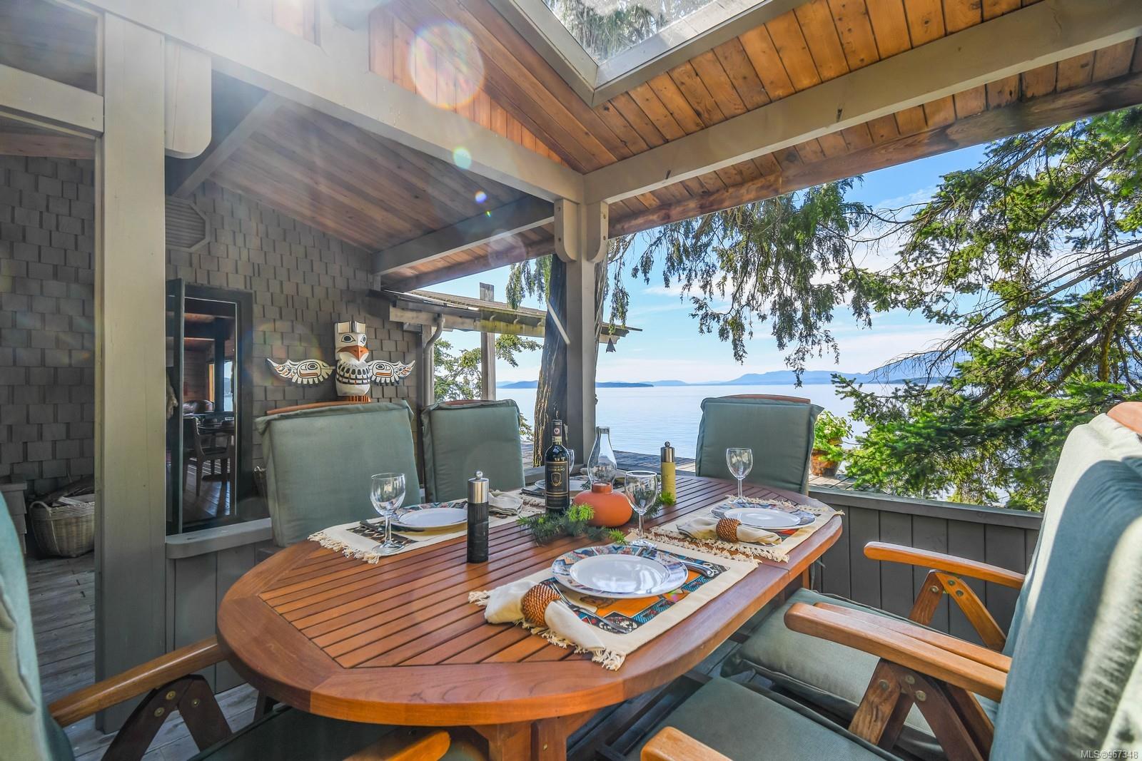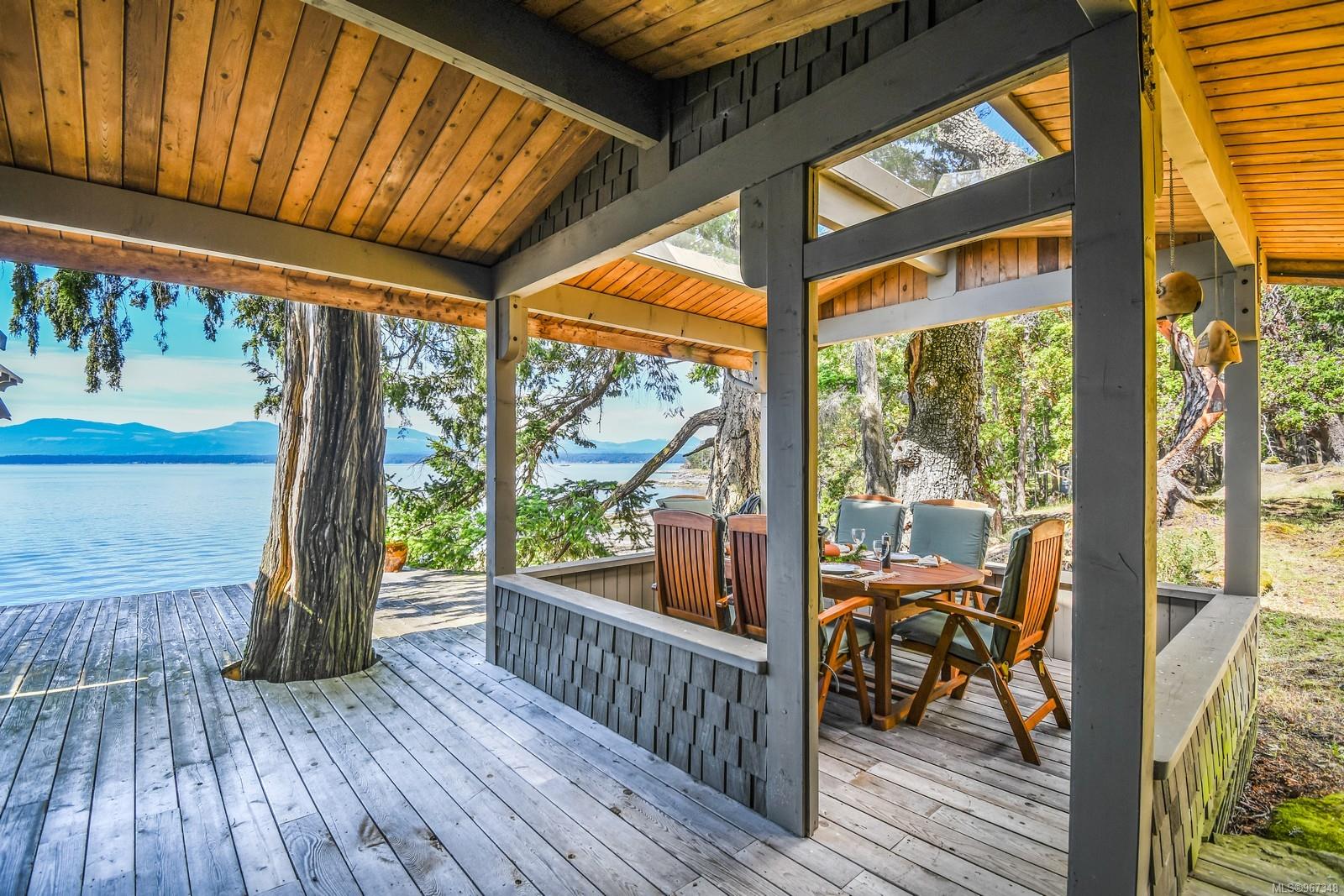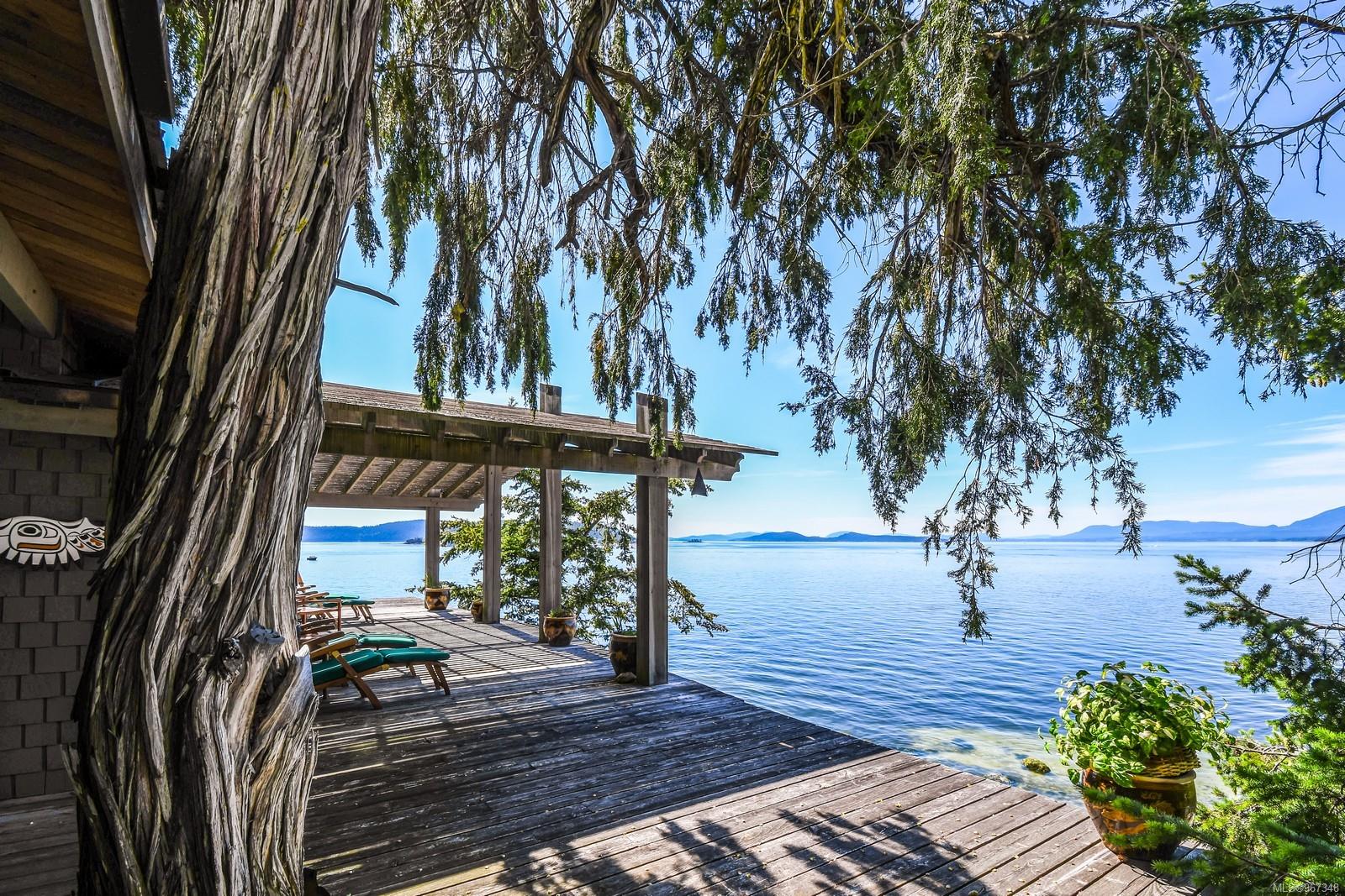 Remarkable piece of Paradise located on DeCourcy Island in the Gulf Islands off Vancouver Island in beautiful BC. This 1.5-acre parcel is like no other on the island & is truly a must-see if you are looking for an amazing one-of-a-kind waterfront retreat. The property is south facing with over 1,000 ft of waterfront & 180-degree views from this spectacular estate. This property has been improved over time to include a spacious & quality built 1,257 sq ft 1 level cottage with 2 bedrooms, 2 bathrooms & a large, picturesque wrap around deck where most of the time will be spent! The cottage offers an open concept design with a dining area, kitchen equipped with propane stove & 3-way fridge, & living room with cozy wood stove, & huge windows with views from every angle. The primary bedroom is amazing & situated overlooking the point & views beyond. Equipped with solar panels & a significant battery powered Outback power system with generator back up which is in the 566 sq ft workshop/storage building which could also be used as additional accommodation. Additionally improved with a 678 sq ft multi-purpose building, that offers a carport, stables, workshop/storage, & utility room with water. There are 2 drilled wells on site with filtration system in the house & gas fired hot water system. The property is located next to Pirates Cove Marine Park, which offers a sandy beach, walking trails, & a private marina called “Russell Landing Marina” open to residents that also has a Float Plane dock. DeCourcy Island offers potable water at the park well, commercial wharf w/crane hoist for offloading materials, community association with their own fire department & a tranquil & serene lifestyle with off grid living & no ferry service. Easily accessible boat access from Boat Harbour, Cedar, Gabriola Island & Vancouver for weekend getaways & summer vacations. The surrounding area has excellent fishing, crabbing, prawning & all the sightseeing & exploring you could want!