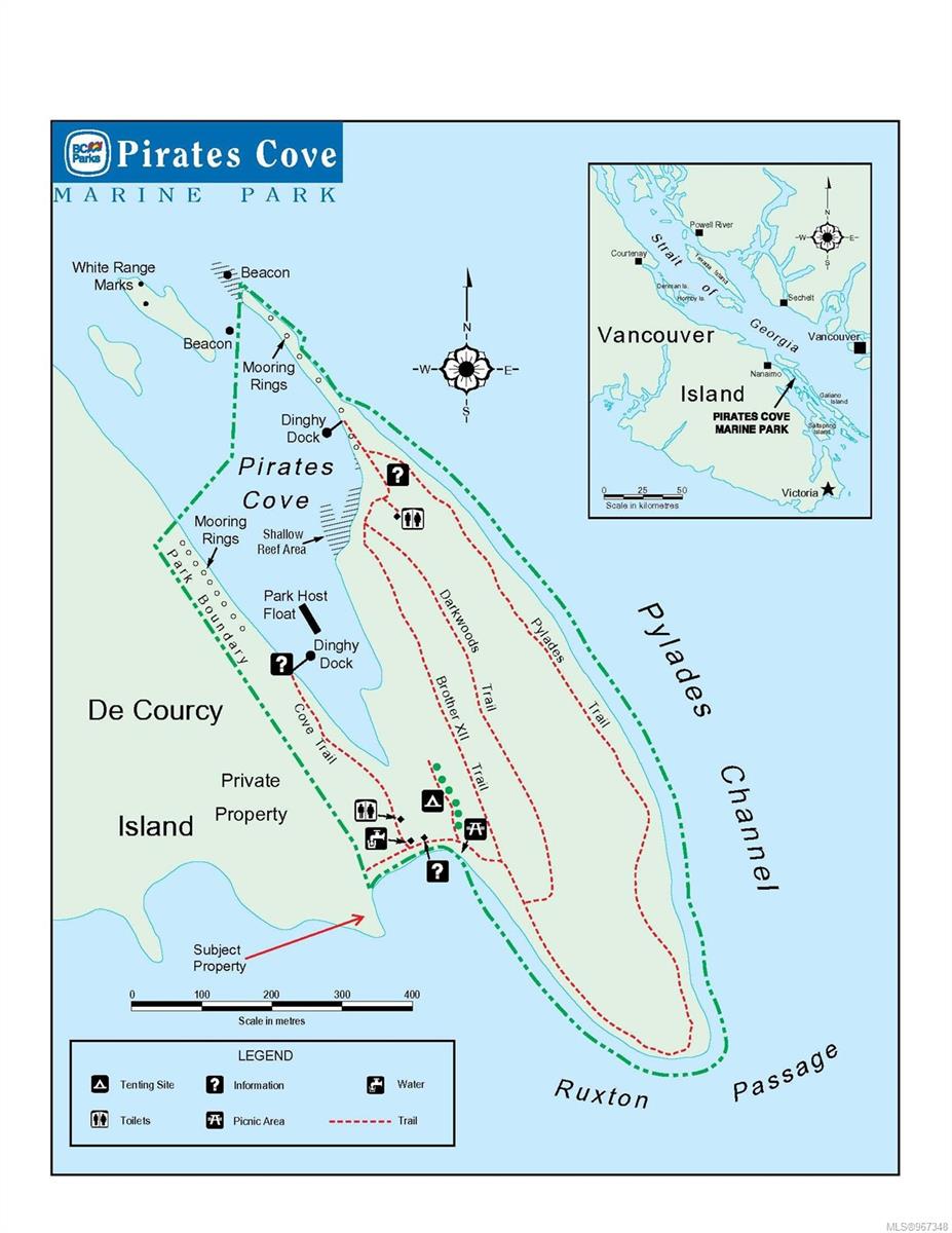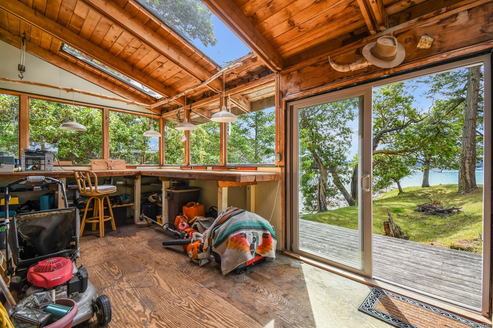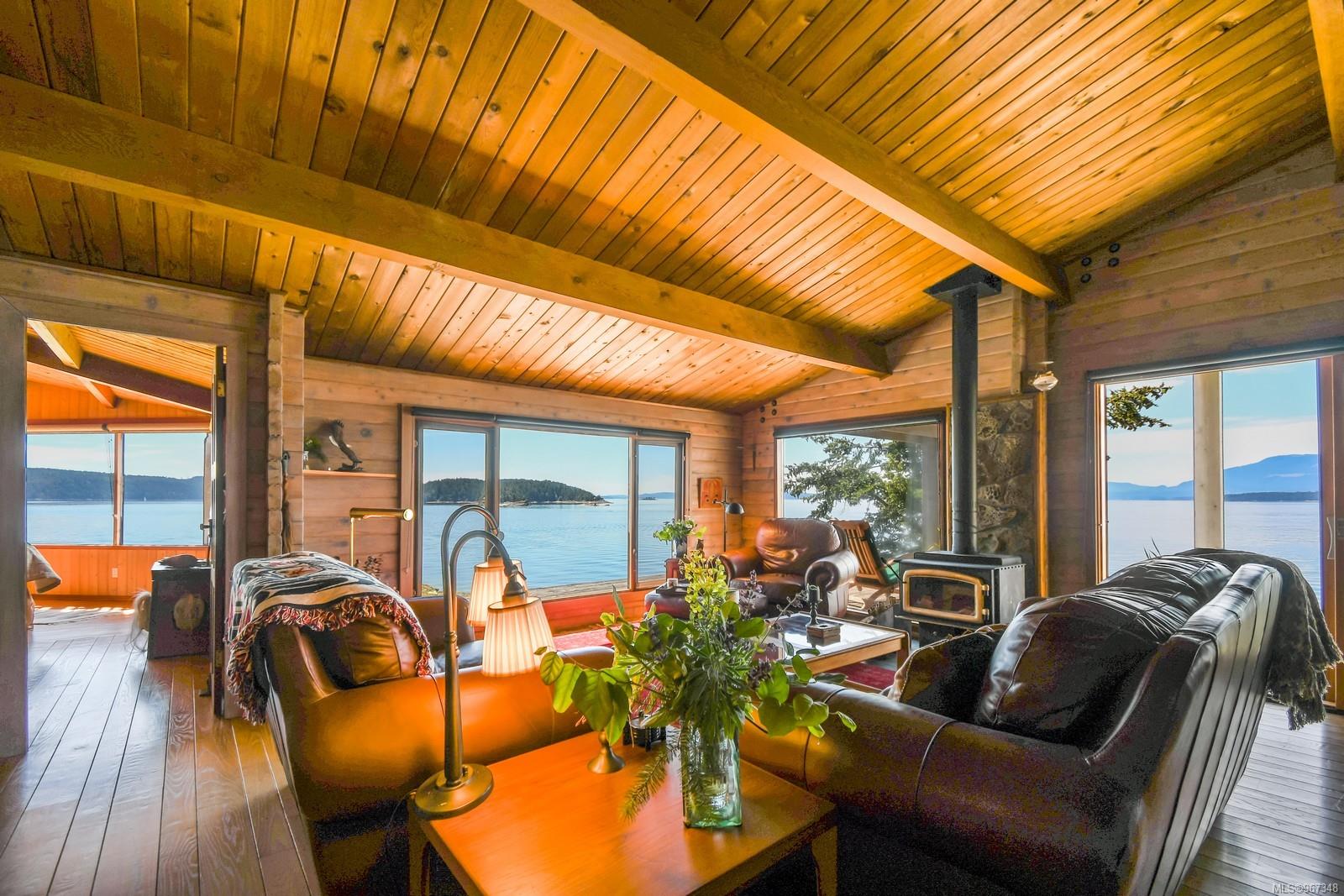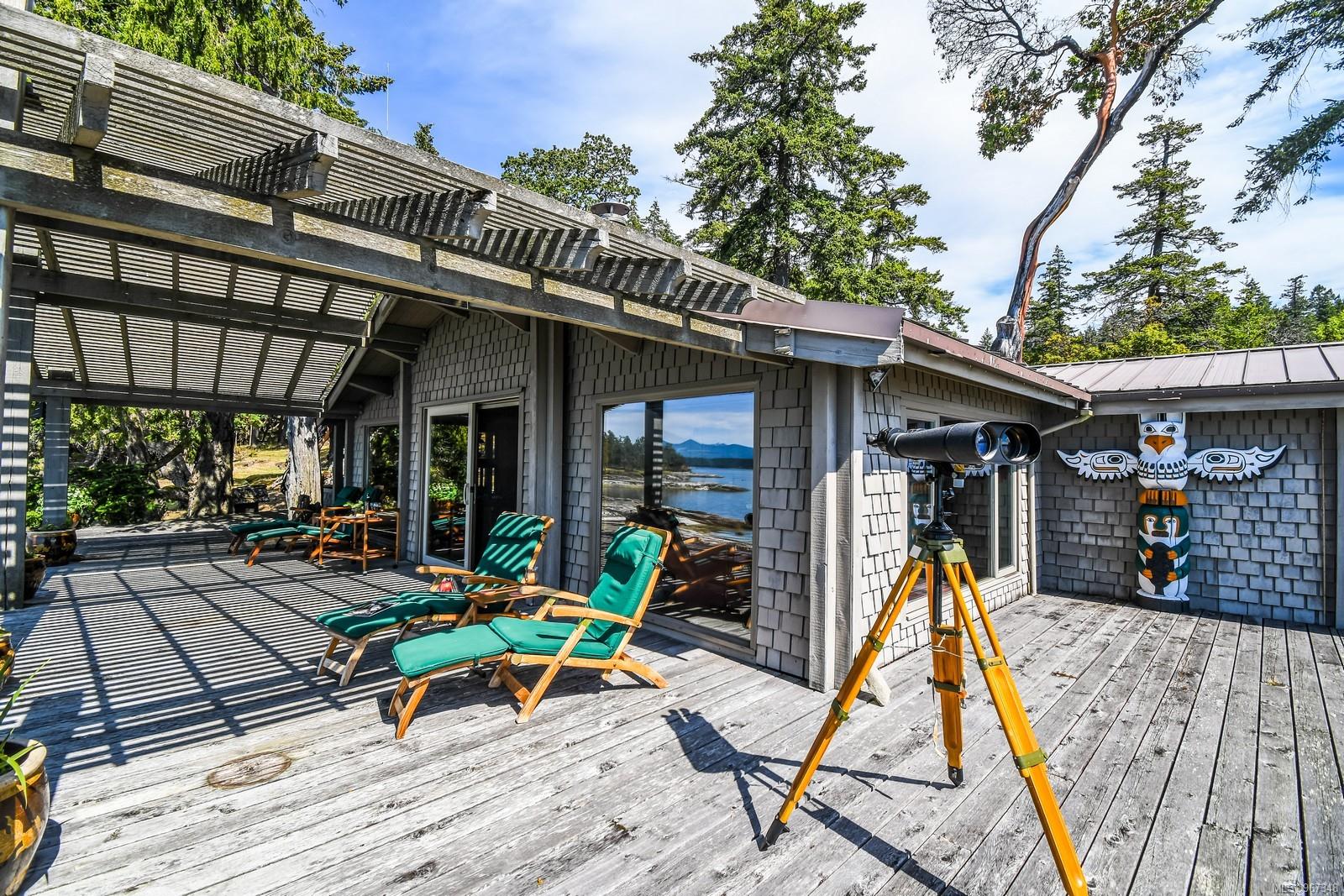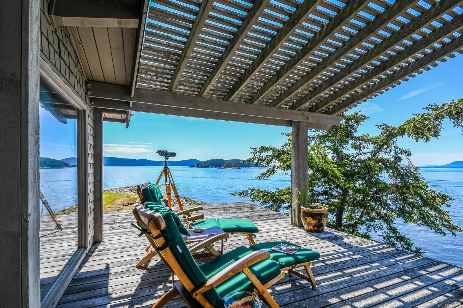 Remarkable piece of Paradise located on DeCourcy Island in the Gulf Islands off Vancouver Island in beautiful BC. This 1.5-acre parcel is like no other on the island & is truly a must-see if you are looking for an amazing one-of-a-kind waterfront retreat. The property is south facing with over 1,000 ft of waterfront & 180-degree views from this spectacular estate. This property has been improved over time to include a spacious & quality built 1,257 sq ft 1 level cottage with 2 bedrooms, 2 bathrooms & a large, picturesque wrap around deck where most of the time will be spent! The cottage offers an open concept design with a dining area, kitchen equipped with propane stove & 3-way fridge, & living room with cozy wood stove, & huge windows with views from every angle. The primary bedroom is amazing & situated overlooking the point & views beyond. Equipped with solar panels & a significant battery powered Outback power system with generator back up which is in the 566 sq ft workshop/storage building which could also be used as additional accommodation. Additionally improved with a 678 sq ft multi-purpose building, that offers a carport, stables, workshop/storage, & utility room with water. There are 2 drilled wells on site with filtration system in the house & gas fired hot water system. The property is located next to Pirates Cove Marine Park, which offers a sandy beach, walking trails, & a private marina called “Russell Landing Marina” open to residents that also has a Float Plane dock. DeCourcy Island offers potable water at the park well, commercial wharf w/crane hoist for offloading materials, community association with their own fire department & a tranquil & serene lifestyle with off grid living & no ferry service. Easily accessible boat access from Boat Harbour, Cedar, Gabriola Island & Vancouver for weekend getaways & summer vacations. The surrounding area has excellent fishing, crabbing, prawning & all the sightseeing & exploring you could want!