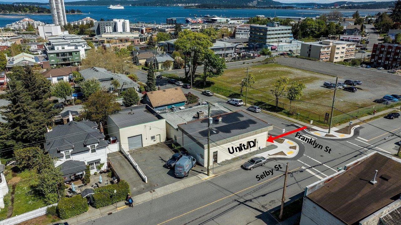 LEASE RATE is $12.00 per sq ft plus Triple Net Expense of $6.81 per sq ft. 879 Sq. Ft. DT 2 zoned Commercial corner office/retail unit available for lease on Franklyn Street near the Old City Quarter just outside the Downtown core. Exposure and access to the unit on 2 streets. Situated within other businesses, shopping, restaurants and easily accessible with parking available along both sides of Franklyn and Selby Street. The unit offers a private washroom, reception/entrance area, storage room, 2 offices and a front retail/work space. One on site parking spot available. Zoning allows for a variety of uses. Zoning allows for a variety of uses but the classified current use is E) “Mercantile occupancies” under the BC Building Code. Change of use available through the City of Nanaimo building permit process. Information Package Available.